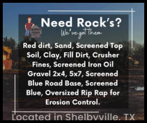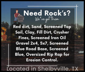 Welcome to Brocks Rocks, located in Shelbyville, Texas. Here are a few photos of us here at the yard and other